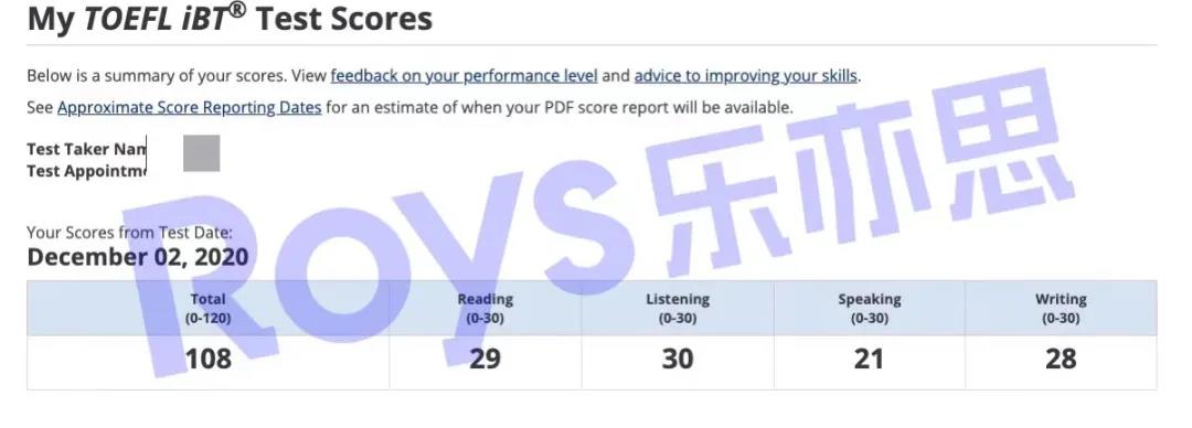Roys樂亦思托福課程學(xué)員實(shí)現(xiàn)93到108的跨越