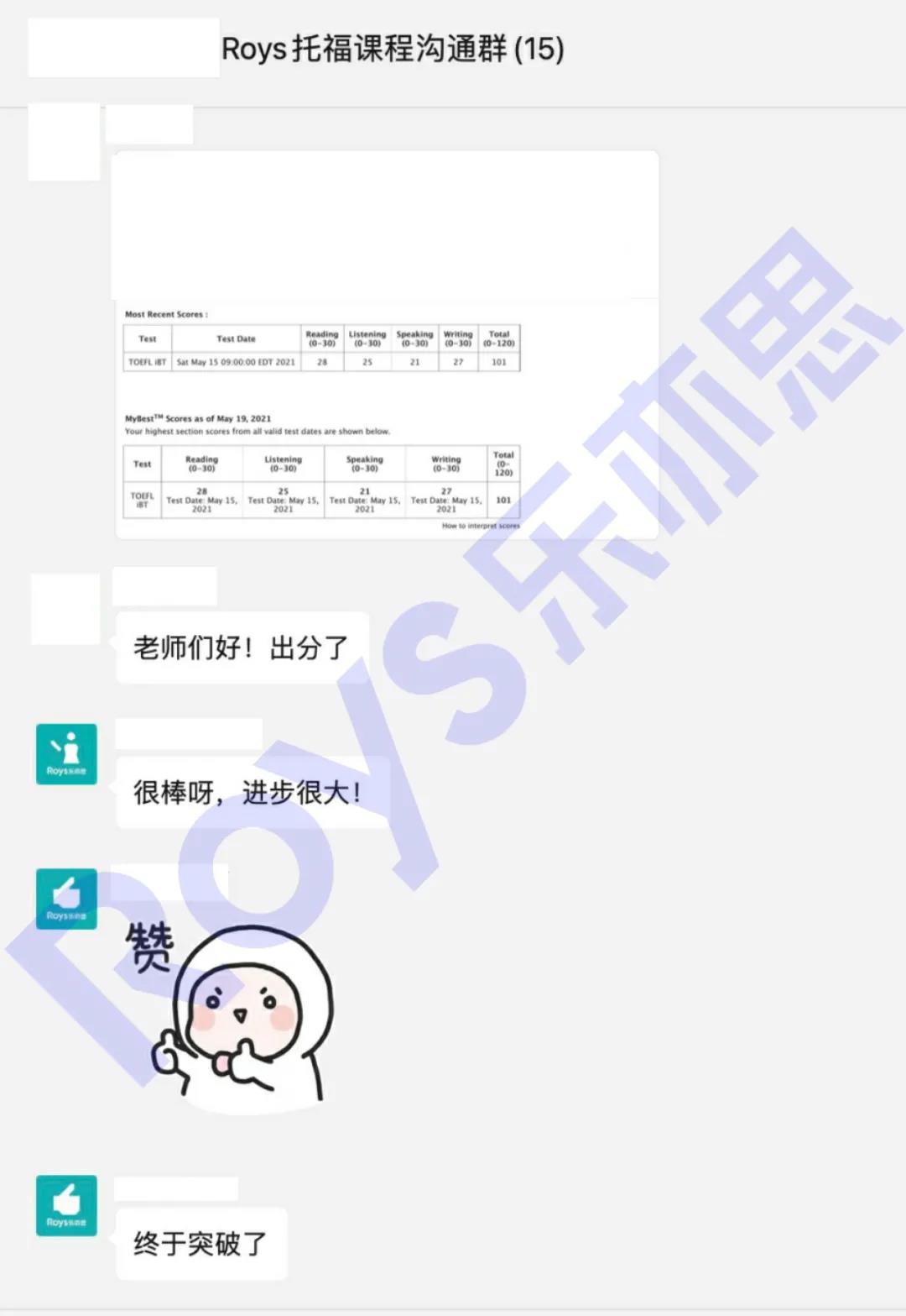 Roys樂亦思托福課程學(xué)員實(shí)現(xiàn)89到101的突破