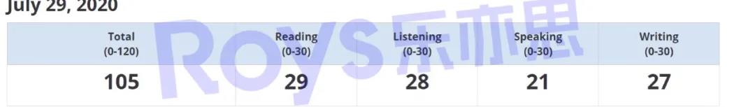 Roys樂亦思托福課程學(xué)員培訓(xùn)從85進(jìn)步到105分