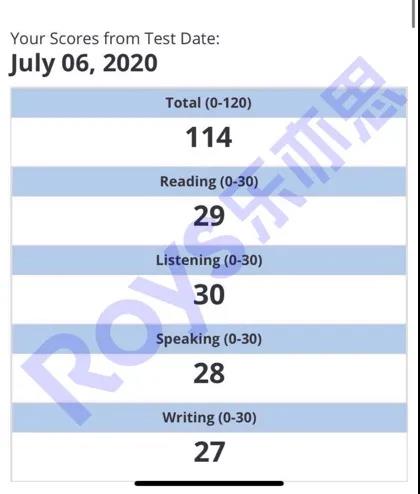 Roys樂亦思托福課程學員培訓7天拿下113分