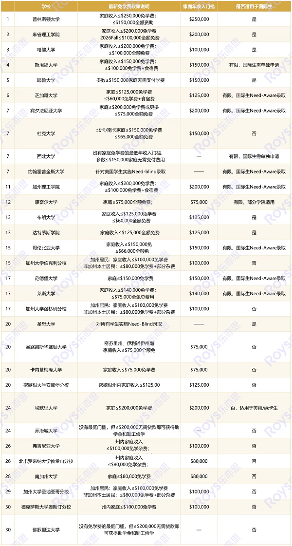 這些政策的出臺,無疑為眾多家庭經濟條件有限的學生打開了通往名校的大門。事實上,越來越多的頂尖大學正逐步放寬學費減免政策的門檻,中產家庭的孩子正成為新的受益群體。對于申請者而言,這無疑是一個利好消息,但要想真正享受到這些政策紅利,還需符合各校的具體要求。
